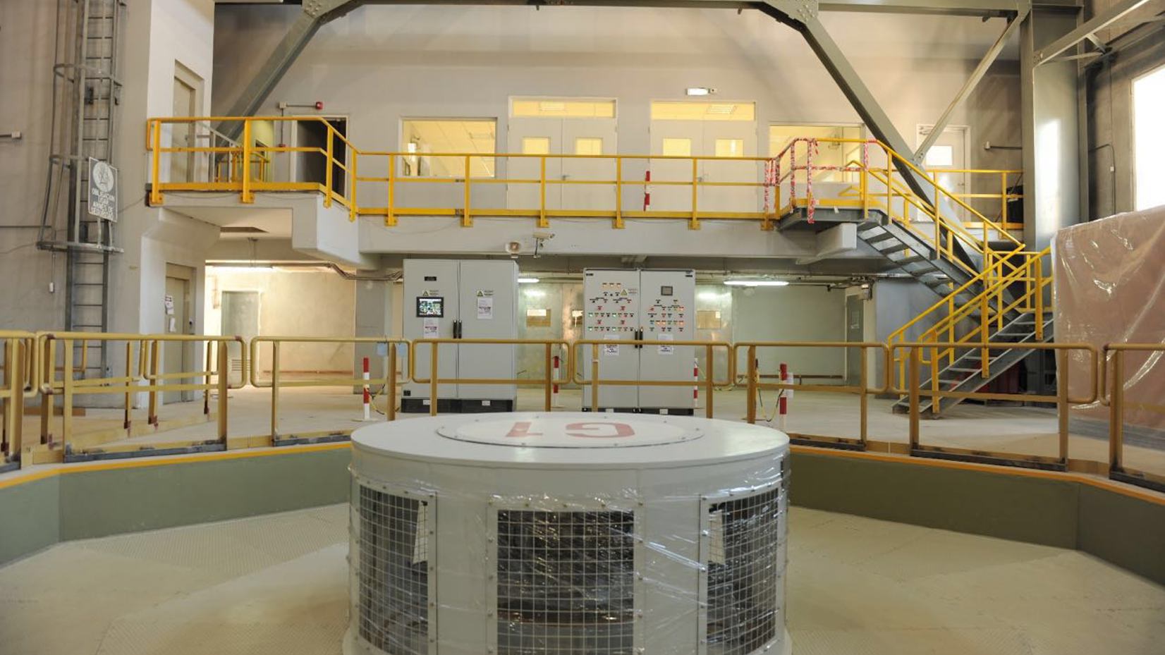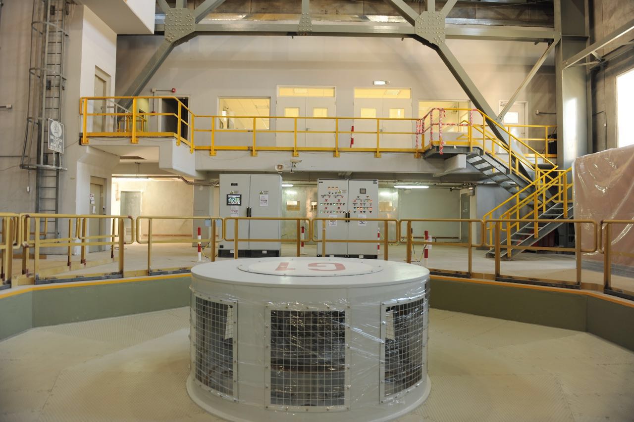 This is the location for the turbines and generators which convert the energy produced by the stationary hydraulic jump first into mechanical energy and then into electricity.